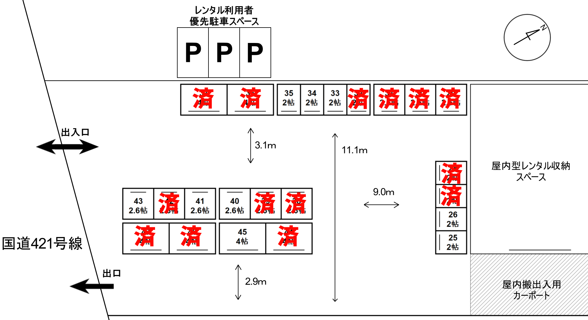 | Q12:Is there parking available? | A:There are three parking spaces available for rental customers, so you can park with peace of mind. You can even park your vehicle in front of a warehouse or container and work there. |
