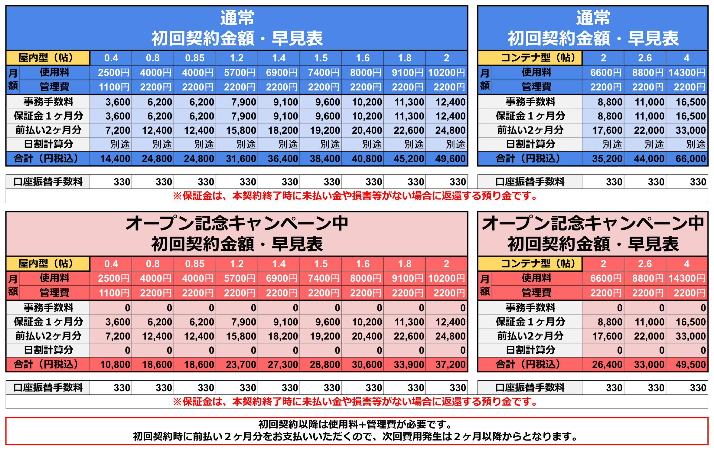 *deposit :1 month of monthly usage fee + 1 month of management fee(*Refund after contract termination)